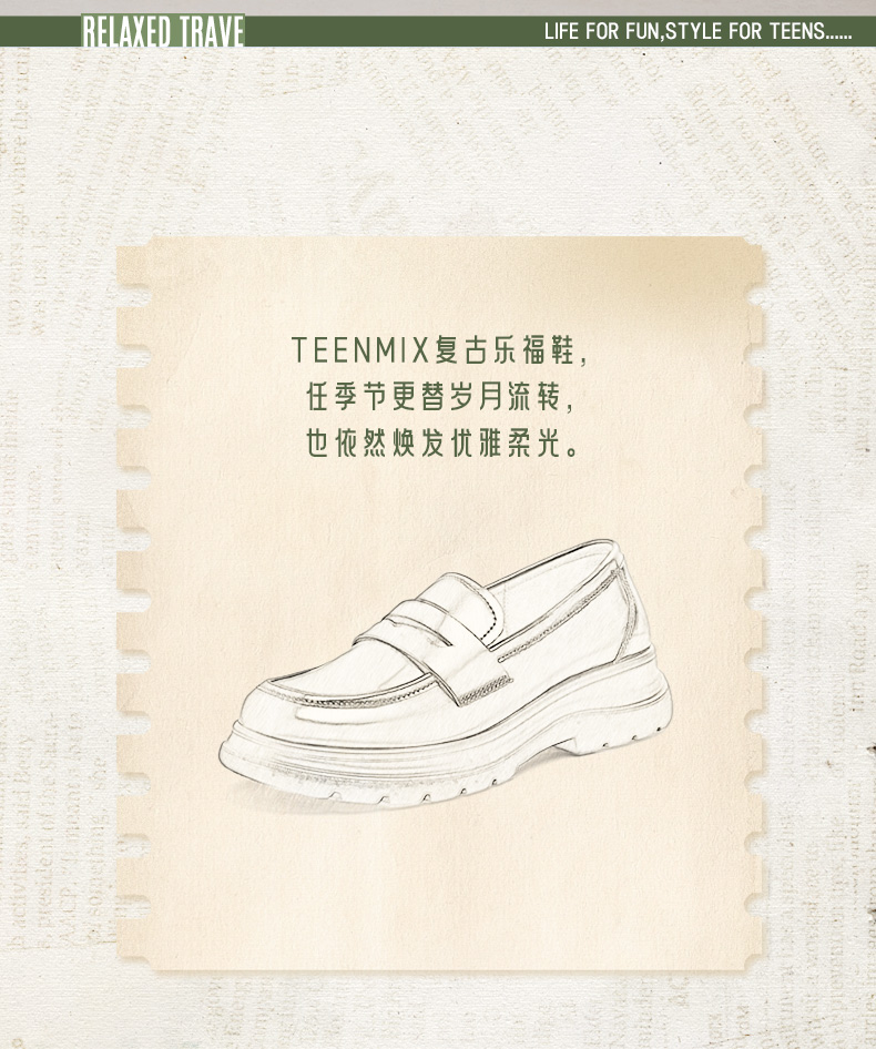 Teenmix(天美意),作为一个都市时尚休闲品牌,倡导“life for fun ,style for teens”即 “人生追求情趣,年轻追求个性”的生活品位,迎合都市年轻人不拘一格,追求mix&match自由组合,创出自我风格的潮流理念。Teenmix向人们展示了流行的转变,强调创意与个性,“teen”代表一群张扬个性、散发活力、追求都市炫彩生活的新新人群;“ mix”即mix&match,代表时尚混搭精神,品牌为年轻人提供恍如贴身订造的时尚潮品,并因应时尚的转变而响应。“随我意,天美意”传达了品牌的主张与个性。