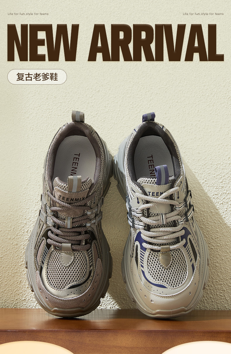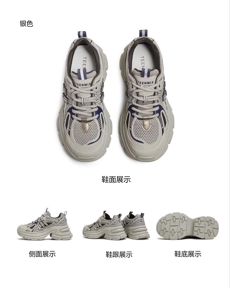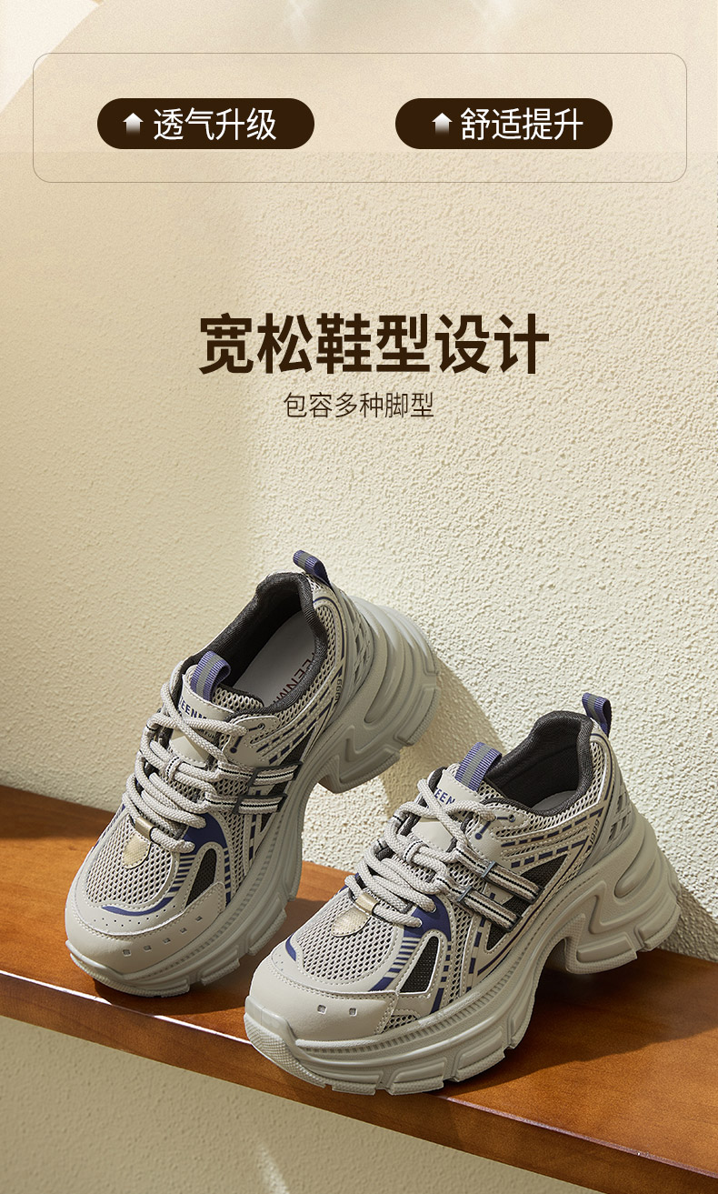 | 上市时间:2025年春季 | 鞋类流行款式:老爹鞋 | 鞋头款式:圆头 | 执行标准:旅游鞋GB/T15107-2013 | 跟高范围:高跟鞋(6-8CM) |