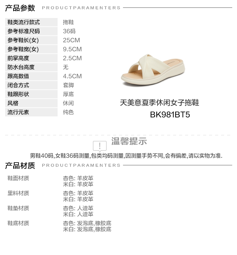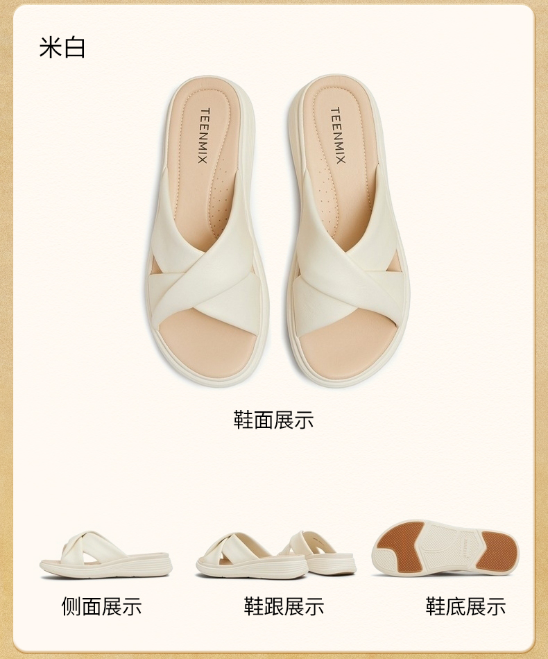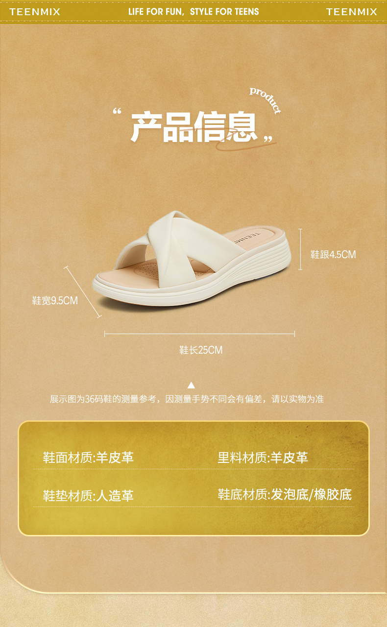 | 皮质特征:羊皮革 | 防水台高度:无 | 鞋类流行款式:拖鞋 |