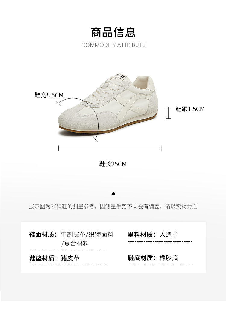 | 参考鞋宽(女):8.5CM | 风格:休闲 | 年份:2025年 | 色系:米色 | 参考标准尺码:36码 |