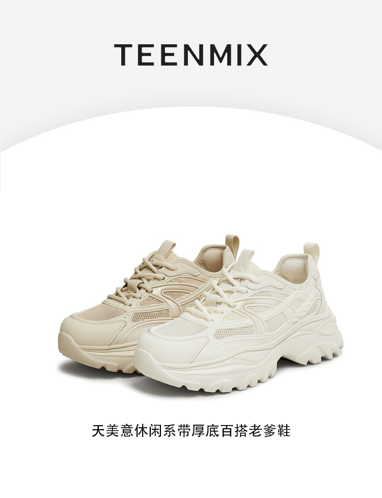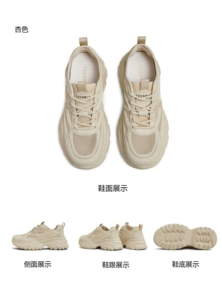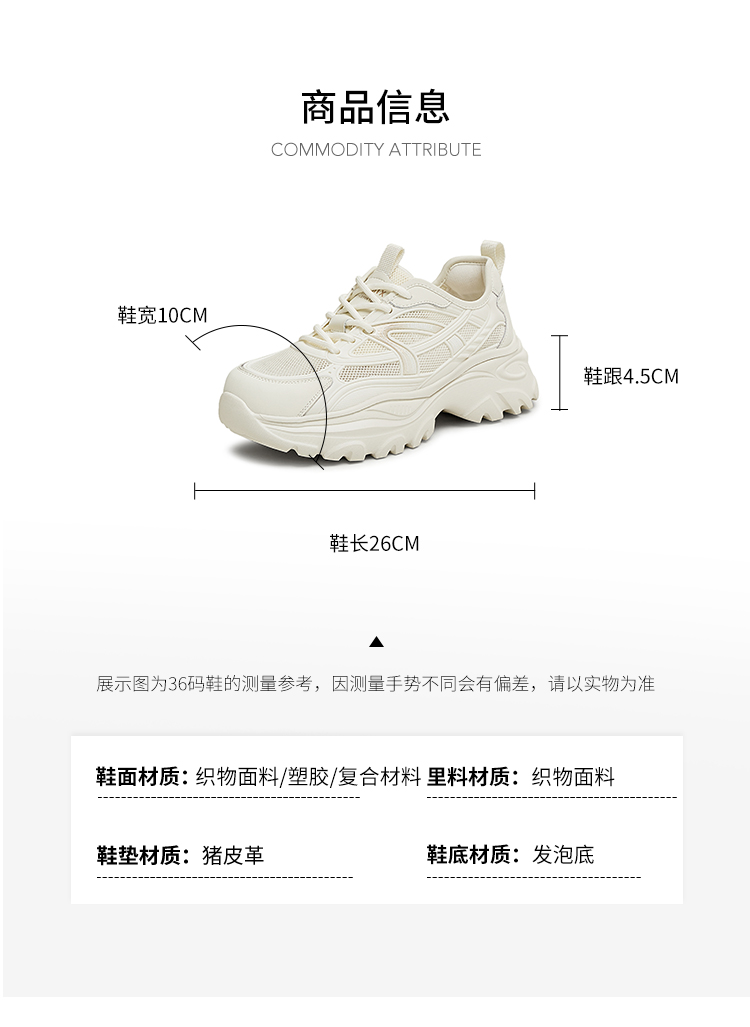 | 风格分类:老爹鞋 | 上市时间:2025年夏季 | 鞋类流行款式:老爹鞋 | 鞋头款式:圆头 | 执行标准:舒适运动鞋Q/LR002-2023 |