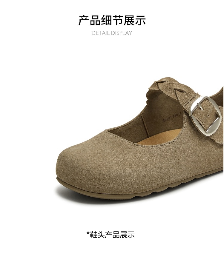 | 鞋面材质:牛剖层革 | 流行元素:纯色 | 参考鞋长(女):25CM | 参考鞋宽(女):10CM | 闭合方式:一字式扣带 |