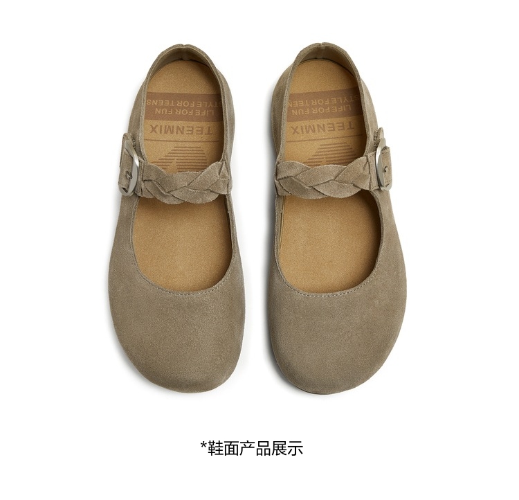 | 鞋头款式:圆头 | 鞋底材质:橡胶底 | 鞋面图案:纯色 | 内增高:无 | 鞋跟形状:平跟 |