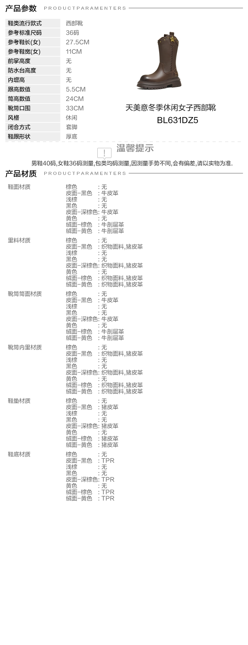 | 配跟:无 | 靴筒口围:33CM | 上市时间:2025年冬季 | 鞋类流行款式:西部靴 | 鞋头款式:圆头 |