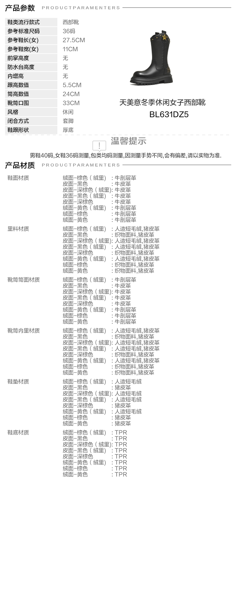 | 配跟:无 | 靴筒口围:33CM | 上市时间:2025年冬季 | 鞋类流行款式:西部靴 | 鞋头款式:圆头 |