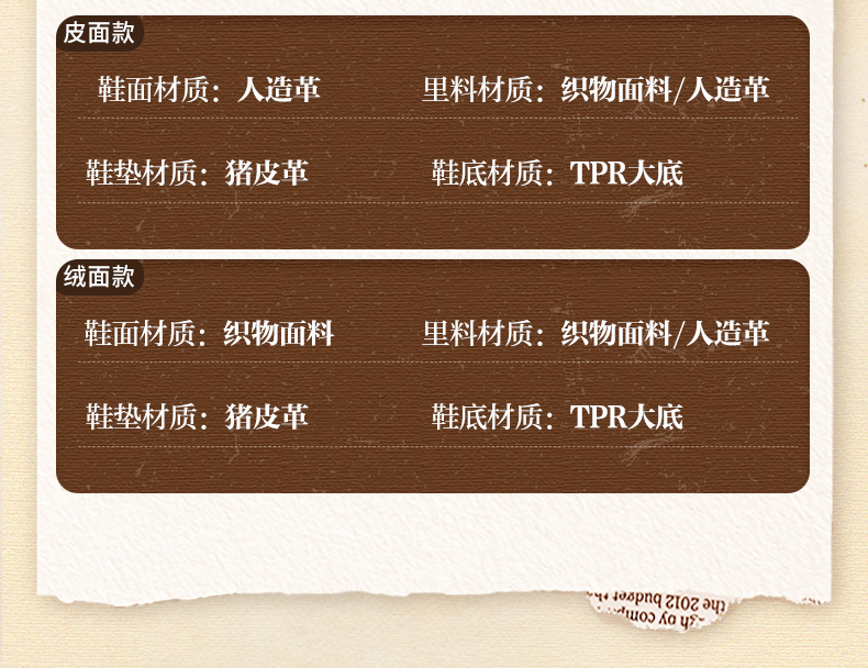 | 靴筒筒面材质:织物面料 | 靴筒小腿围:33CM | 里料材质:人造革织物面料 | 制鞋工艺:胶贴皮鞋 | 鞋垫材质:猪皮革 |