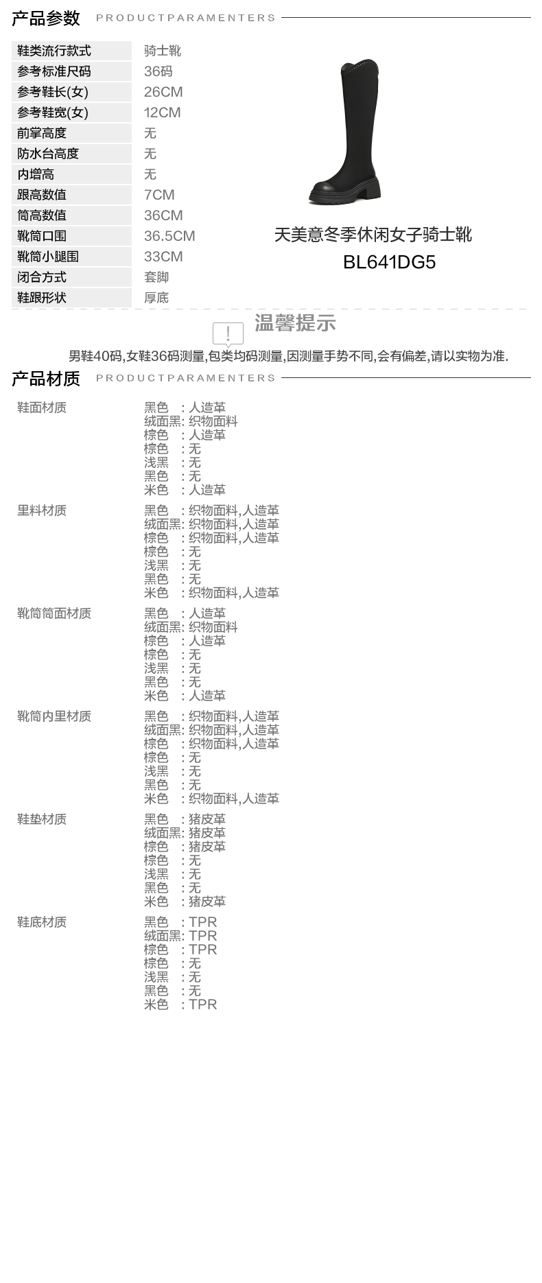 | 配跟:无 | 靴筒口围:36.5CM | 上市时间:2025年冬季 | 鞋类流行款式:骑士靴 | 鞋头款式:圆头 |