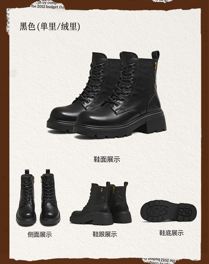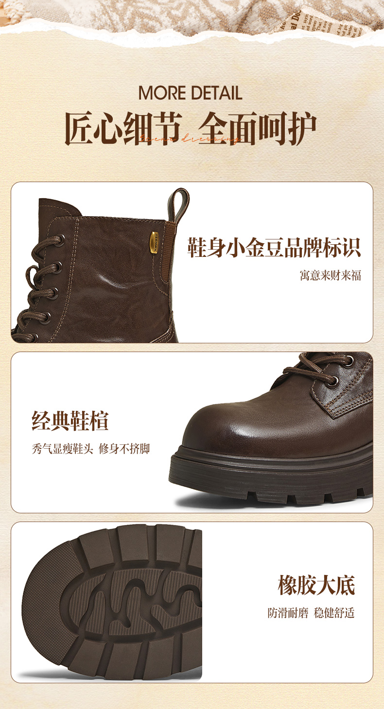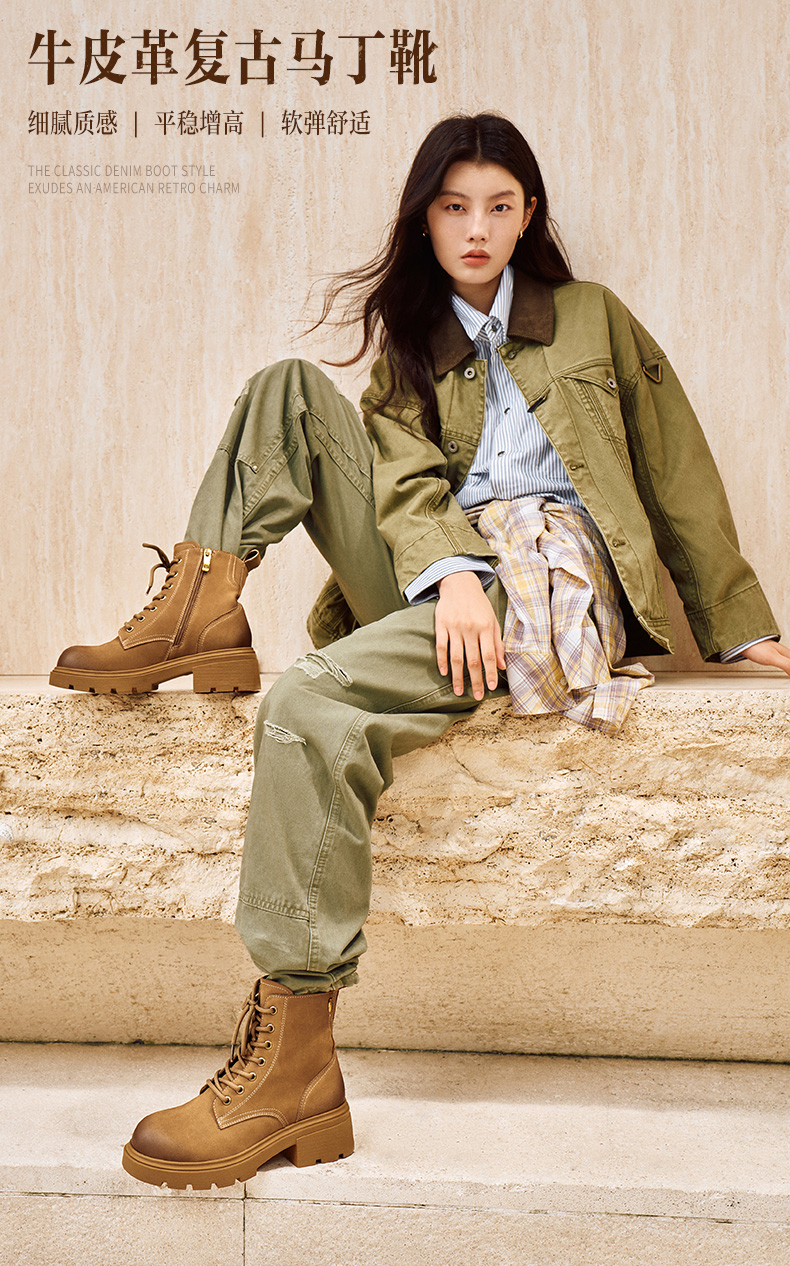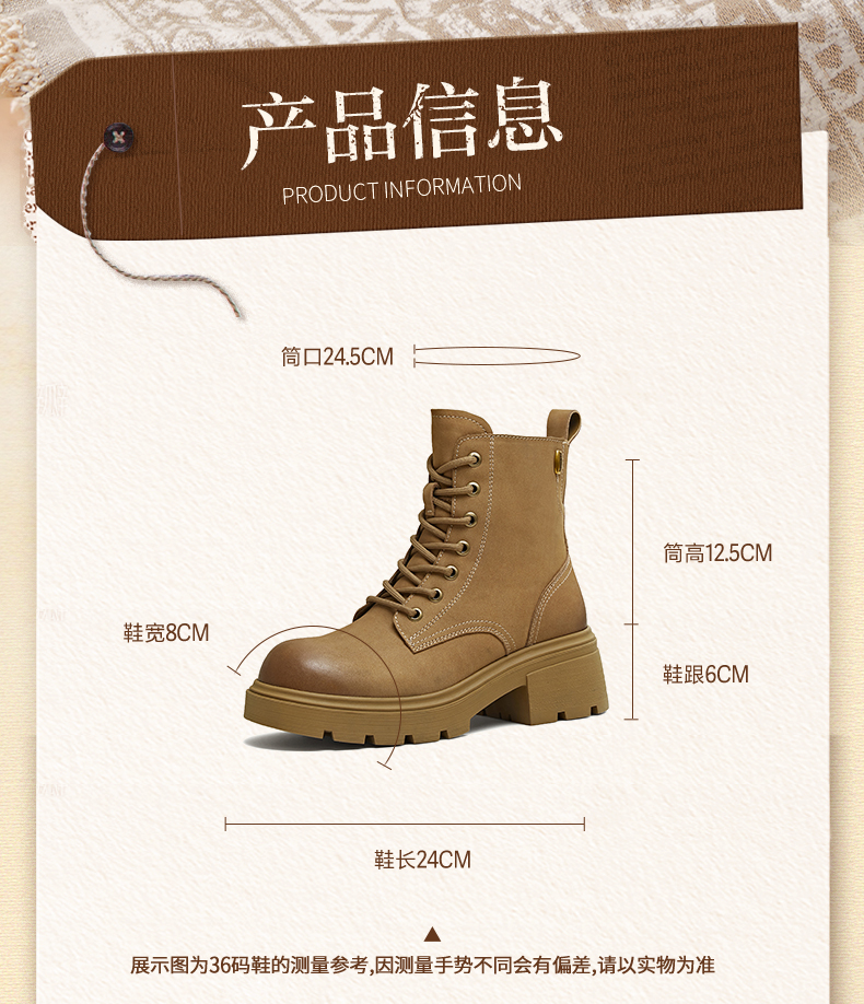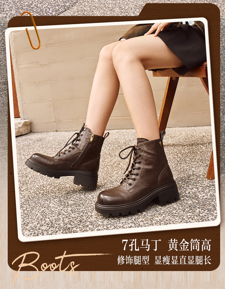 | 帮面材质:牛皮革 | 配跟:无 | 靴筒口围:24.5CM | 上市时间:2025年冬季 | 鞋类流行款式:马丁靴 |