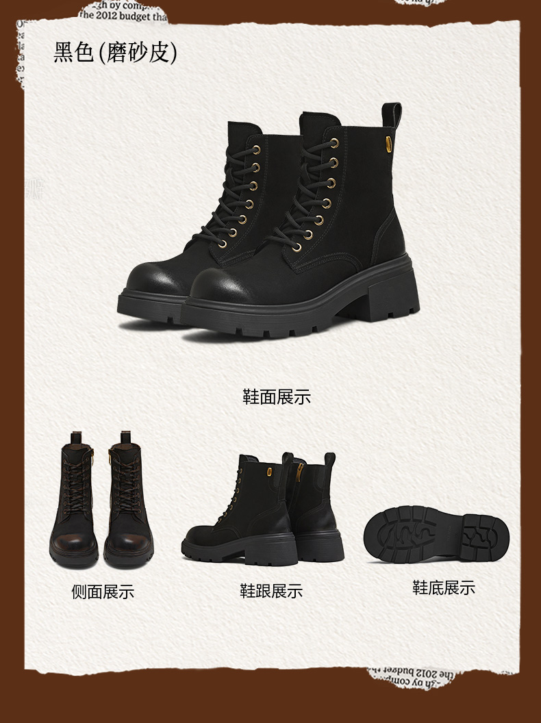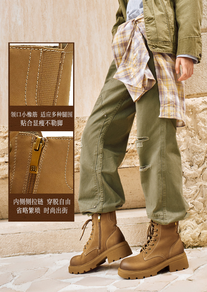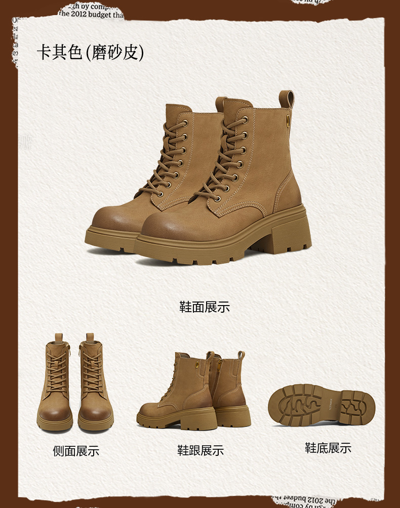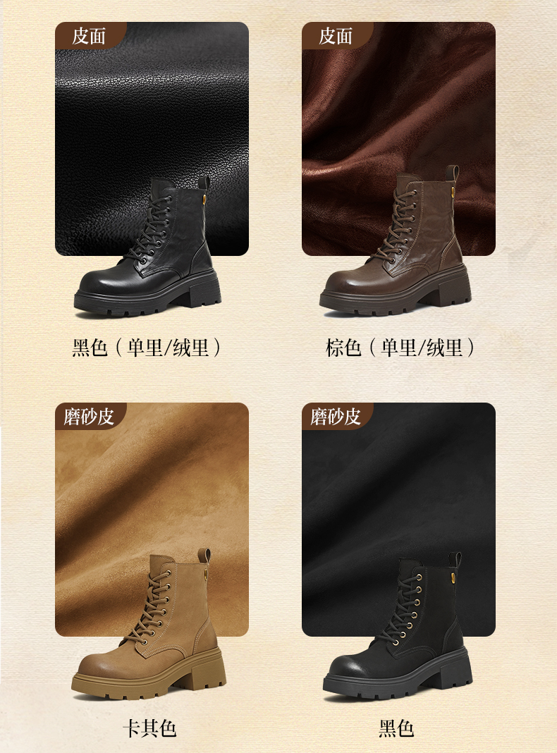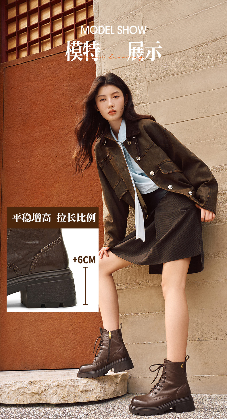 | 帮面材质:牛皮革 | 配跟:无 | 靴筒口围:24.5CM | 上市时间:2025年冬季 | 鞋类流行款式:马丁靴 |