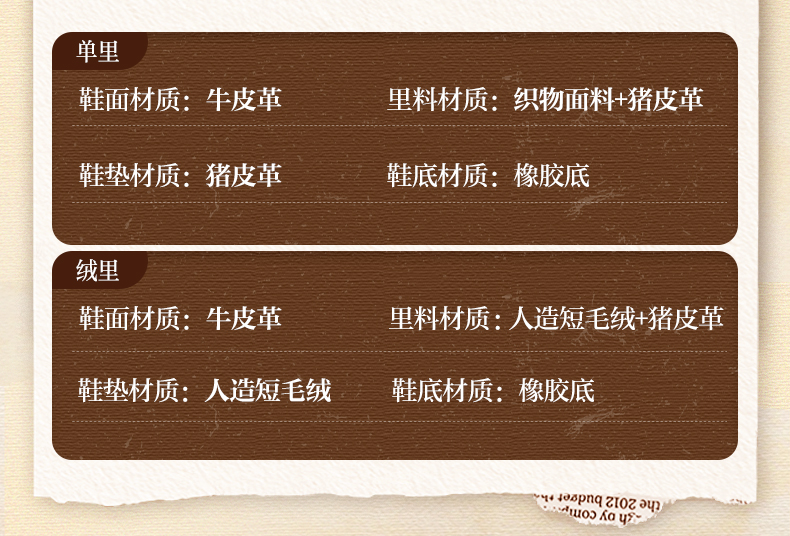 | 筒高数值:12.5CM | 靴筒筒面材质:牛皮革 | 里料材质:猪皮革人造短毛绒 | 制鞋工艺:胶贴皮鞋 | 鞋垫材质:人造短毛绒 |