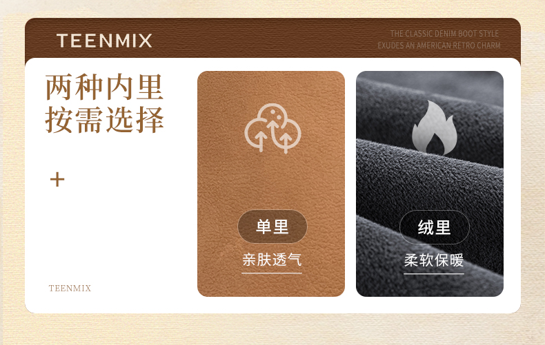 Teenmix(天美意),作为一个都市时尚休闲品牌,倡导“life for fun ,style for teens”即 “人生追求情趣,年轻追求个性”的生活品位,迎合都市年轻人不拘一格,追求mix&match自由组合,创出自我风格的潮流理念。Teenmix向人们展示了流行的转变,强调创意与个性,“teen”代表一群张扬个性、散发活力、追求都市炫彩生活的新新人群;“ mix”即mix&match,代表时尚混搭精神,品牌为年轻人提供恍如贴身订造的时尚潮品,并因应时尚的转变而响应。“随我意,天美意”传达了品牌的主张与个性。