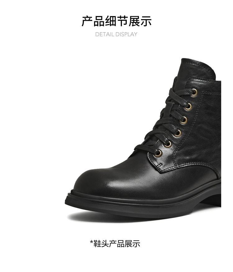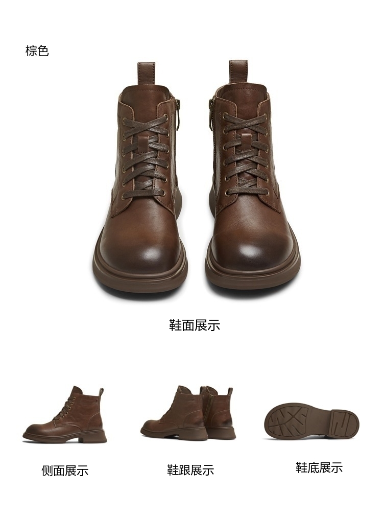 | 鞋底材质:橡胶底 | 靴筒内里材质:猪皮革人造短毛绒 | 内增高:无 | 鞋面材质:牛皮革 | 闭合方式:侧拉链系带 |