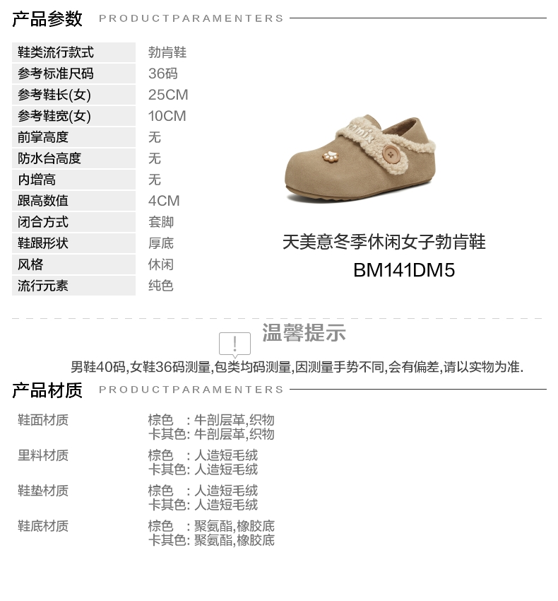 | 配跟:无 | 上市时间:2025年冬季 | 鞋类流行款式:勃肯鞋 | 鞋头款式:圆头 | 鞋面图案:纯色 |