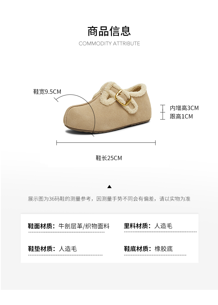 | 色系:杏色 | 跟高数值:1CM | 适用人群:女子 | 性别:女子 | 里料材质:人造毛 |