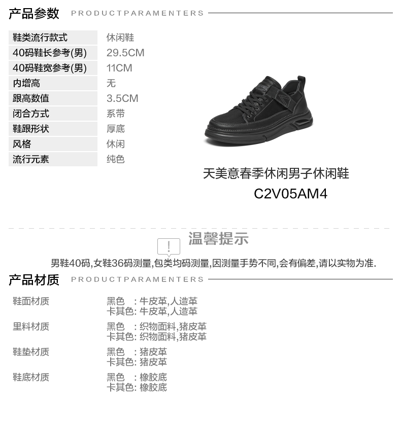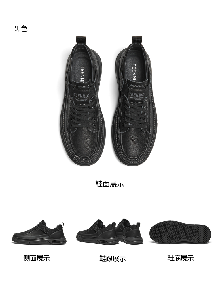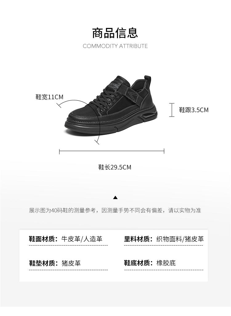 | 风格:休闲 | 色系:黑色 | 跟高数值:3.5CM | 40码鞋宽参考(男):11CM | 性别:男子 |