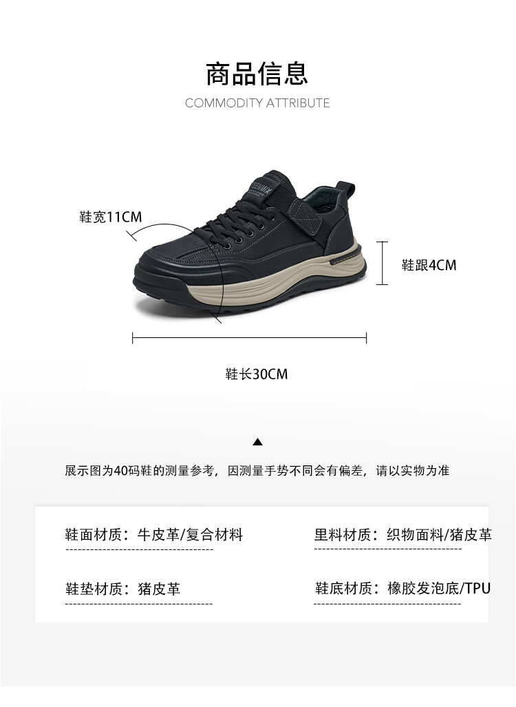 | 40码鞋长参考(男):30CM | 鞋帮:低帮 | 功能科技:耐磨 | 鞋底材质:TPU橡胶发泡底 | 内增高:无 |
