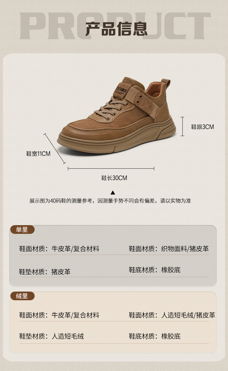 | 40码鞋长参考(男):30CM | 鞋底材质:橡胶底 | 靴筒内里材质:猪皮革织物面料 | 内增高:无 | 鞋面材质:牛皮革复合材料 |