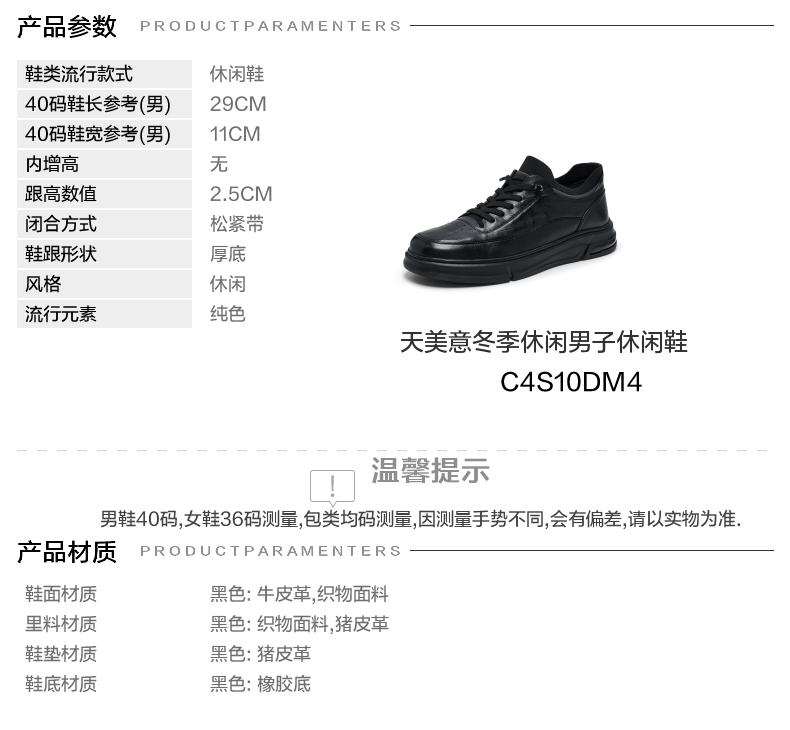 | 风格:休闲 | 色系:黑色 | 跟高数值:2.5CM | 40码鞋宽参考(男):11CM | 性别:男子 |
