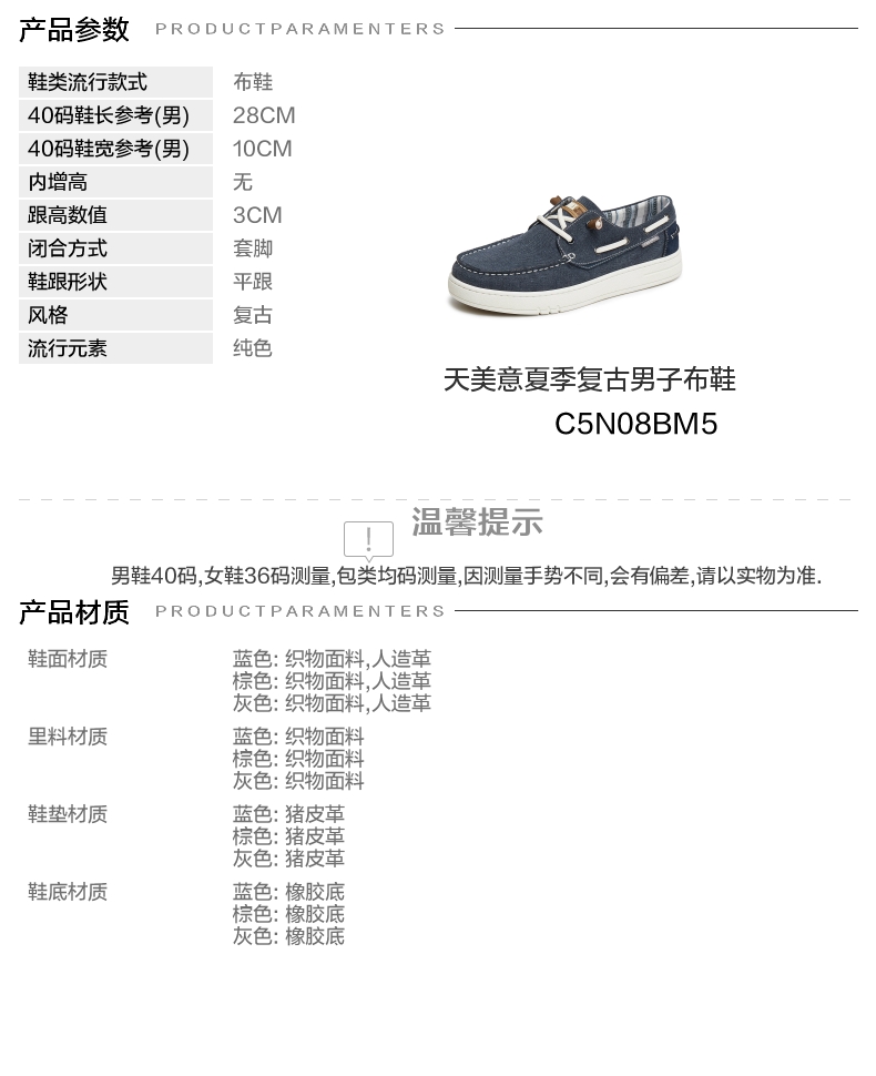 | 色系:蓝色 | 跟高数值:3CM | 性别:男子 | 里料材质:织物面料 | 内里:纺织品 |