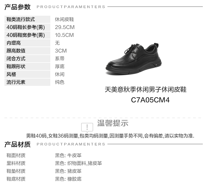 | 风格:休闲 | 色系:黑色 | 跟高数值:3CM | 40码鞋宽参考(男):10.5CM | 性别:男子 |