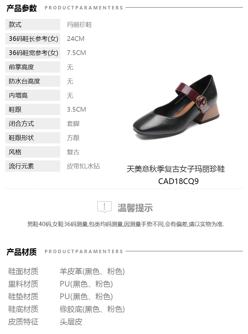 | 皮质特征:头层皮 | 前掌高度:无 | 防水台高度:无 | 鞋类流行款式:玛丽珍鞋 |