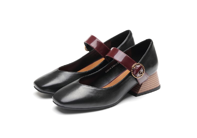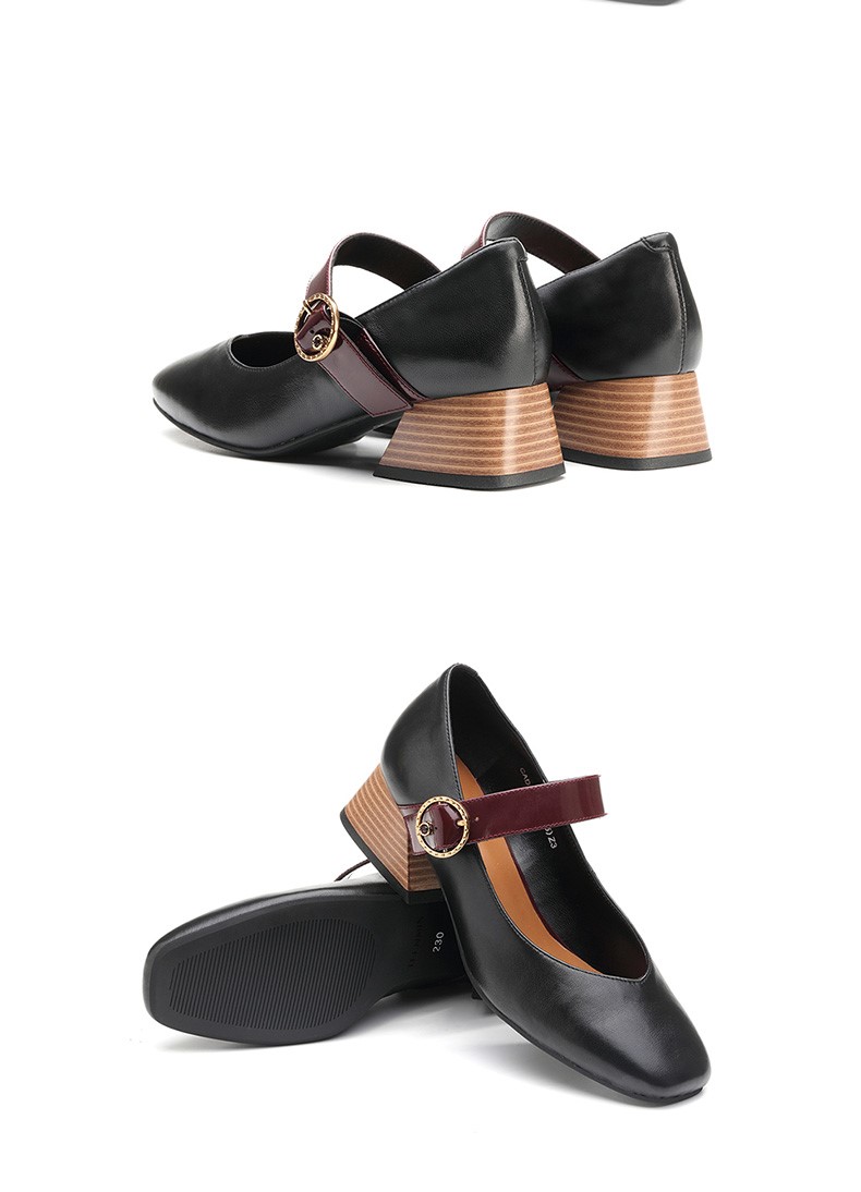 | 鞋头款式:方头 | 鞋底材质:橡胶底 | 鞋面图案:纯色 | 内增高:无 | 鞋跟形状:方跟 |