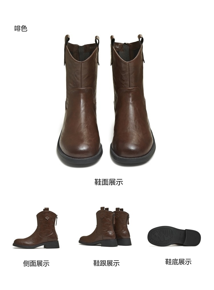 | 鞋底材质:橡胶底 | 靴筒内里材质:人造革织物面料 | 内增高:无 | 鞋面材质:复合材料 | 闭合方式:后拉链 |