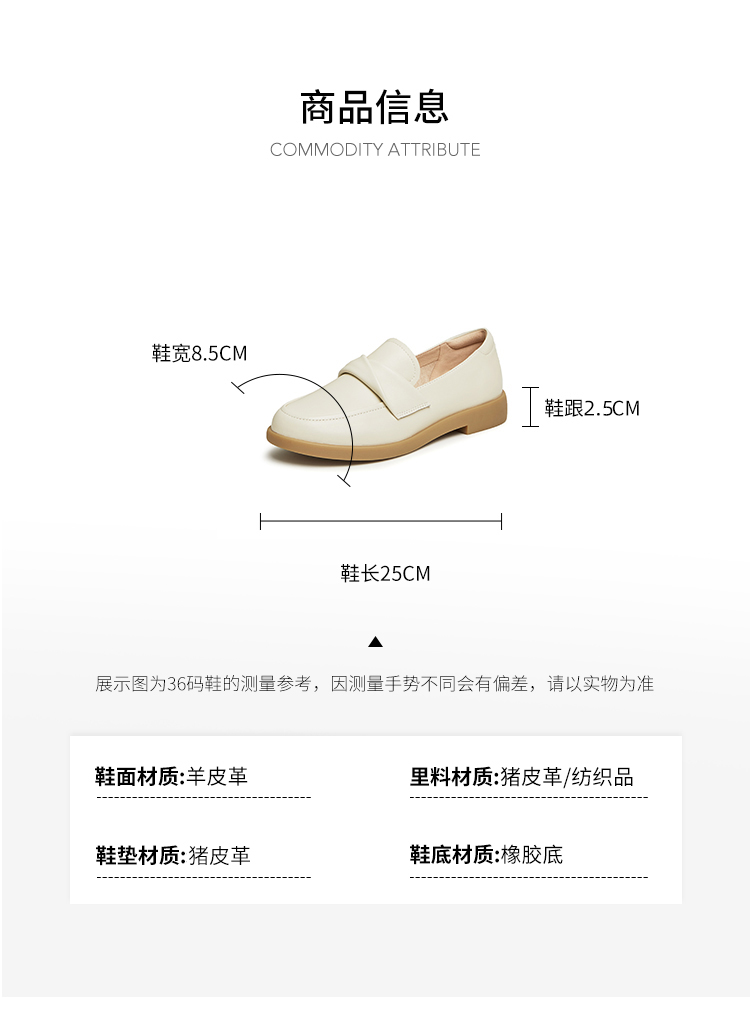 | 配跟:无 | 上市时间:2024年春季 | 鞋类流行款式:乐福鞋 | 鞋头款式:圆头 | 鞋面图案:纯色 |