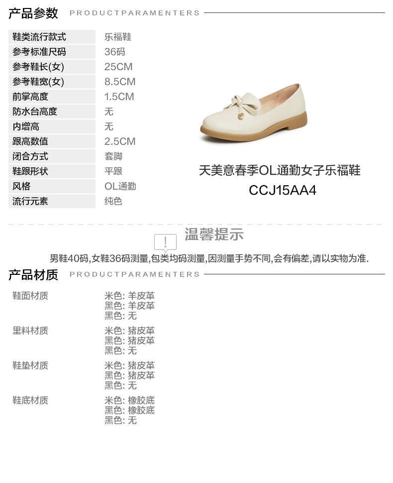 | 参考鞋长(女):25CM | 参考鞋宽(女):8.5CM | 风格:OL通勤 | 色系:米色 | 参考标准尺码:36码 |