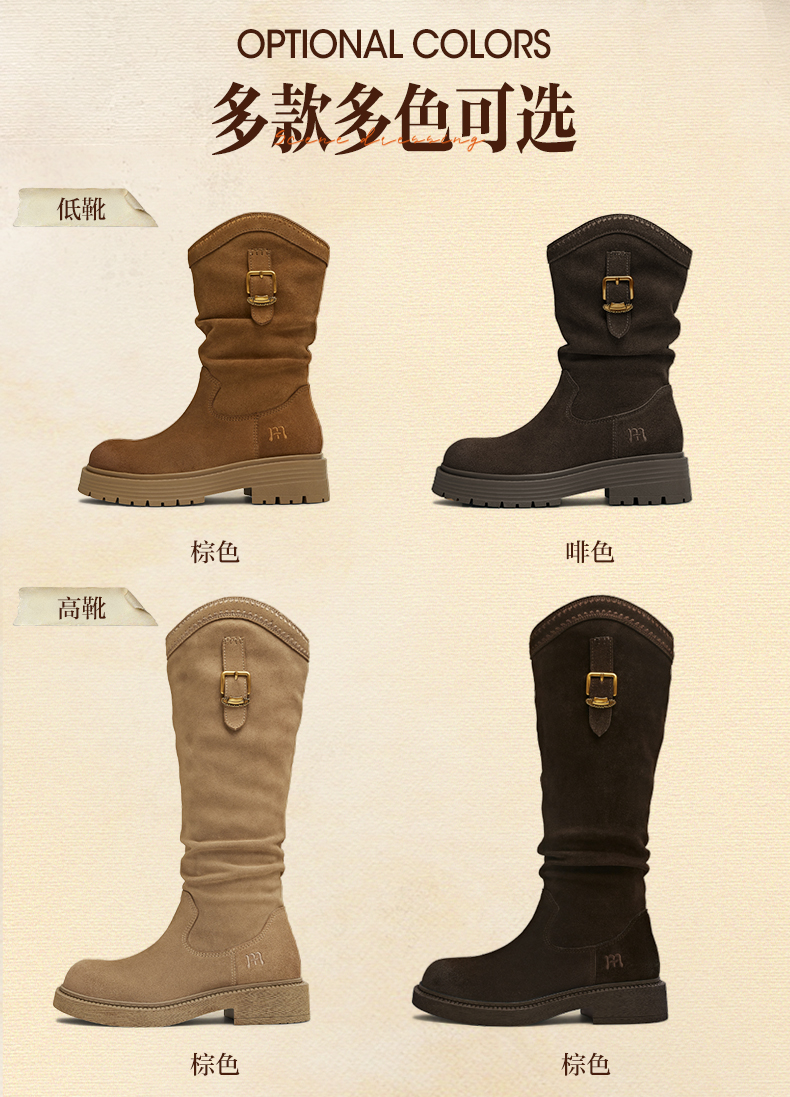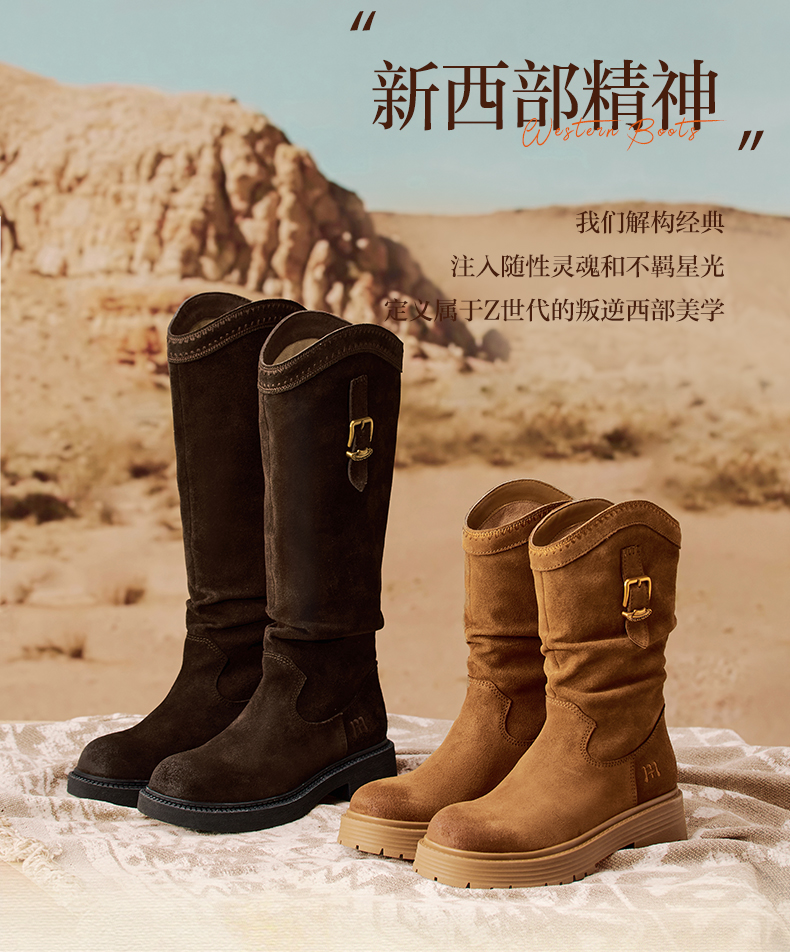 | 配跟:无 | 靴筒口围:37.5CM | 上市时间:2025年冬季 | 鞋类流行款式:西部靴 | 鞋头款式:圆头 |