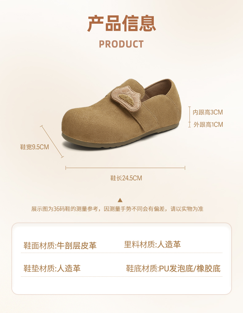 | 配跟:无 | 上市时间:2025年秋季 | 鞋类流行款式:勃肯鞋 | 鞋头款式:圆头 | 鞋面图案:纯色 |