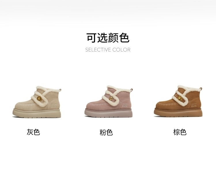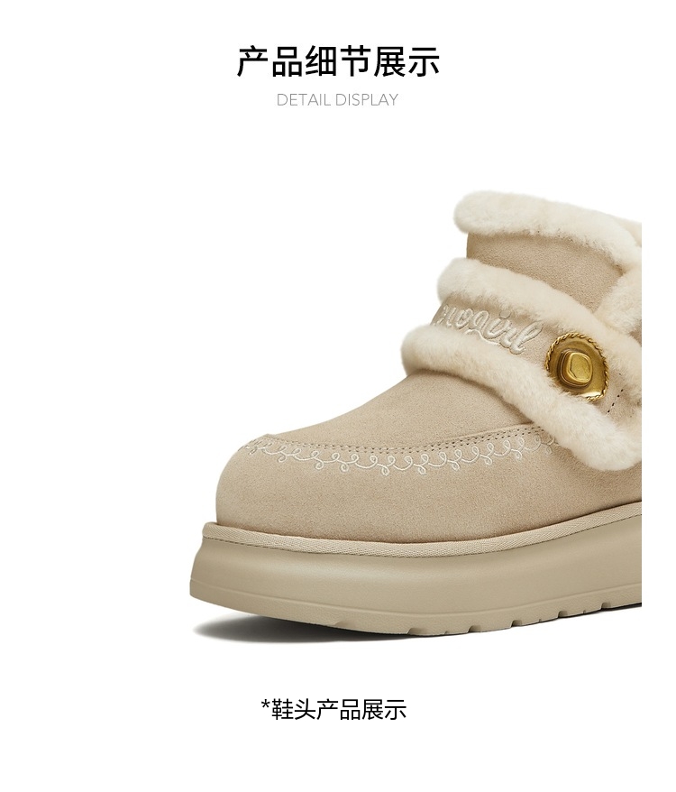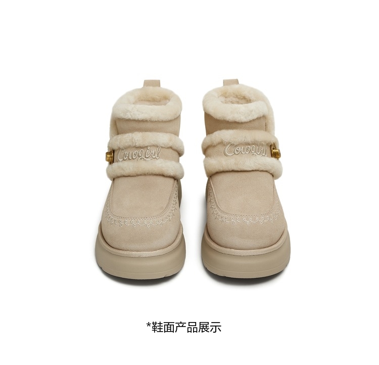 | 帮面材质:牛剖层革 | 配跟:无 | 靴筒口围:30.5CM | 上市时间:2025年冬季 | 鞋类流行款式:雪地靴 |