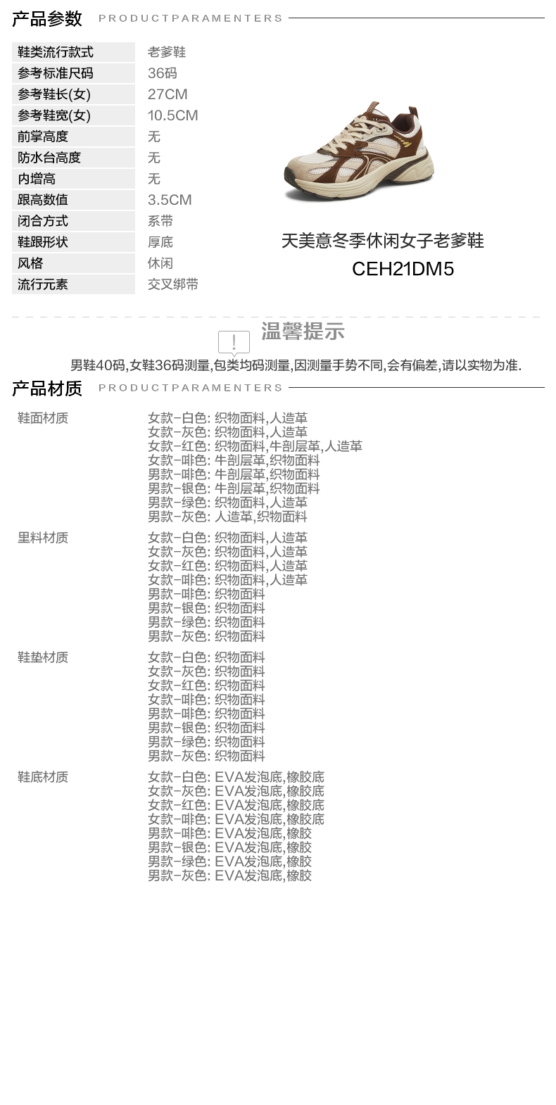 | 配跟:无 | 上市时间:2025年冬季 | 鞋类流行款式:老爹鞋 | 鞋头款式:圆头 | 鞋面图案:纯色 |