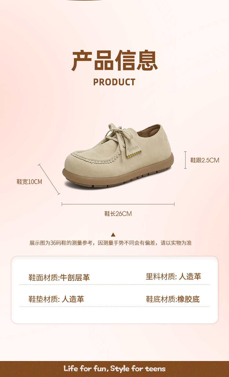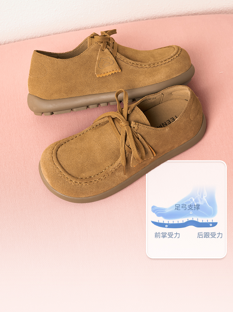 | 闭合方式:系带 | 风格:休闲 | 跟高数值:2.5CM | 色系:棕色 | 配跟:无 |