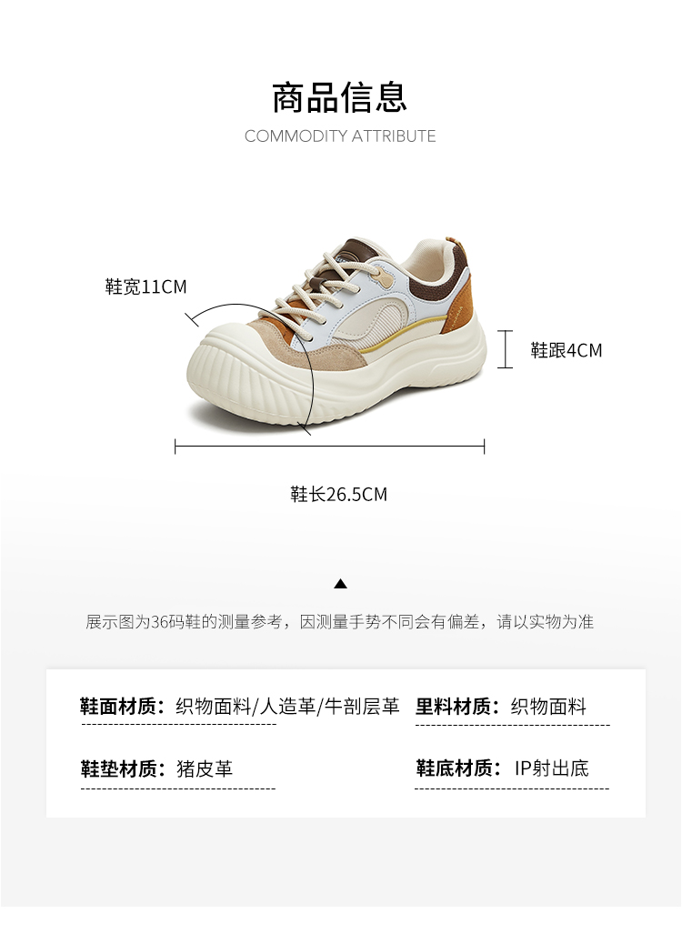 | 鞋帮:低帮 | 鞋头款式:圆头 | 鞋底材质:IP射出底 | 鞋面图案:纯色 | 内增高:无 |