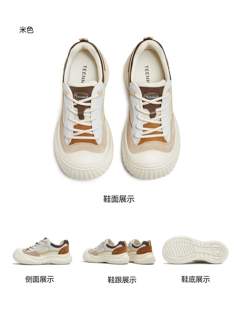 | 闭合方式:系带 | 风格:休闲 | 跟高数值:4CM | 色系:咖啡色 | 配跟:无 |