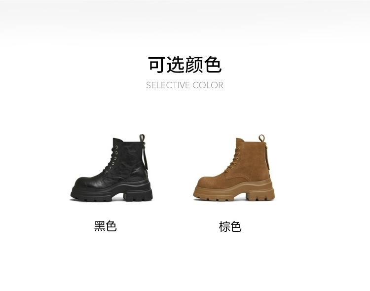 | 帮面材质:牛剖层革 | 配跟:无 | 靴筒口围:26CM | 上市时间:2025年冬季 | 鞋类流行款式:马丁靴 |