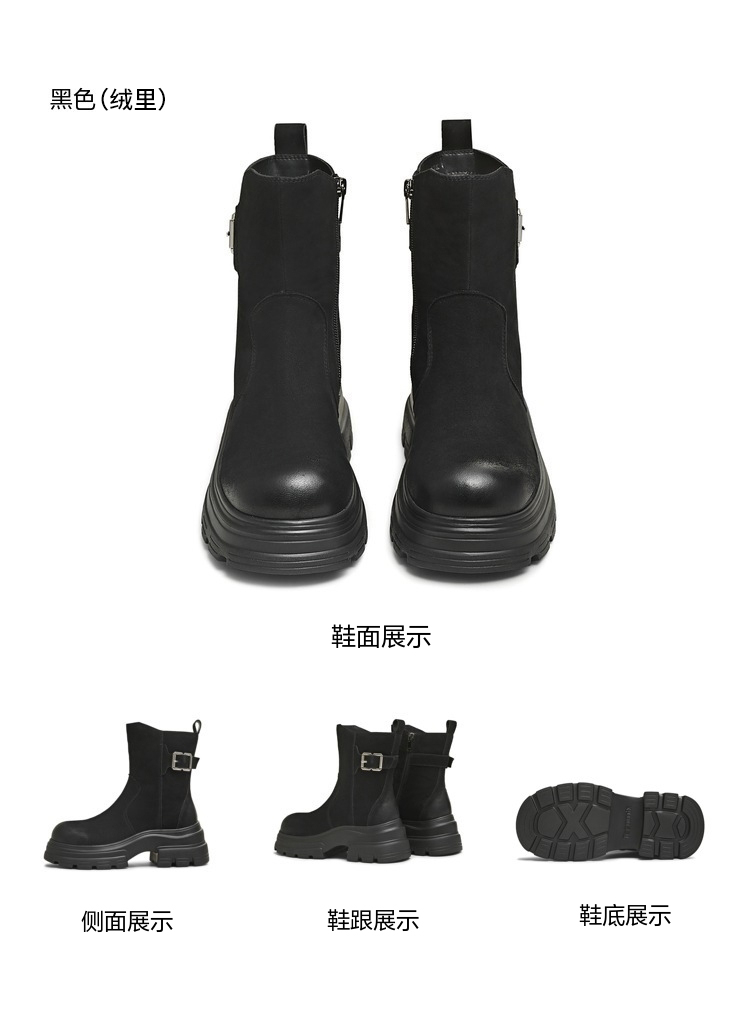 | 鞋底材质:IP射出底 | 靴筒内里材质:织物面料 | 内增高:无 | 鞋面材质:羊皮革 | 闭合方式:套脚 |