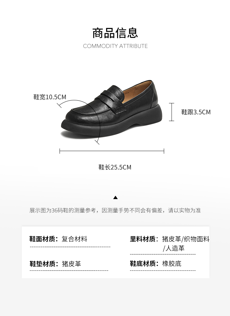 | 鞋垫材质:猪皮革 | 前掌高度:1.5CM | 皮质特征:复合材料/织物 | 鞋类流行款式:乐福鞋 |
