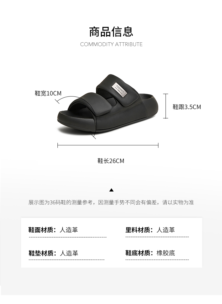 | 皮质特征:人造革 | 防水台高度:无 | 鞋类流行款式:拖鞋 |