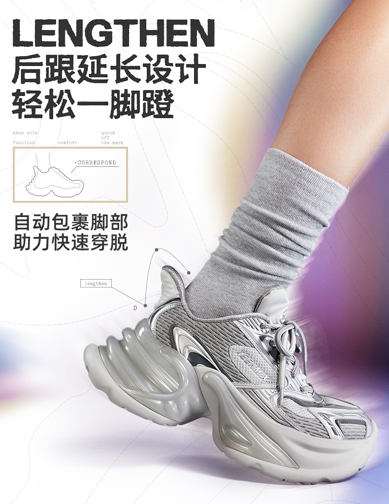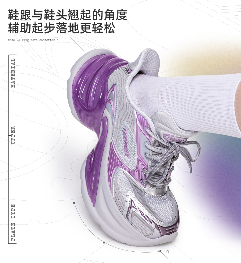 | 风格分类:老爹鞋 | 上市时间:2025年春季 | 鞋类流行款式:老爹鞋 | 鞋头款式:圆头 | 执行标准:舒适运动鞋Q/LR002-2023 |