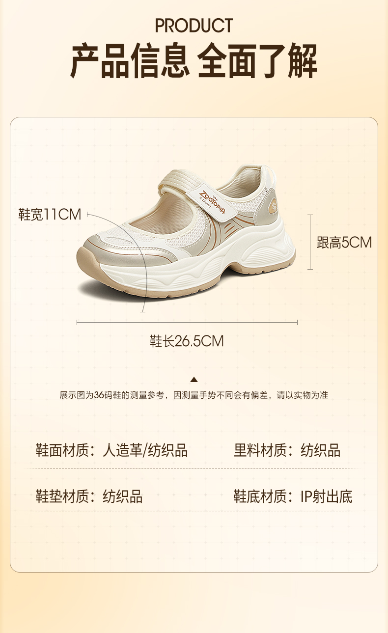 | 上市时间:2025年夏季 | 鞋类流行款式:休闲鞋 | 鞋头款式:圆头 | 跟高范围:中跟鞋(3-5CM) | 鞋面图案:纯色 |
