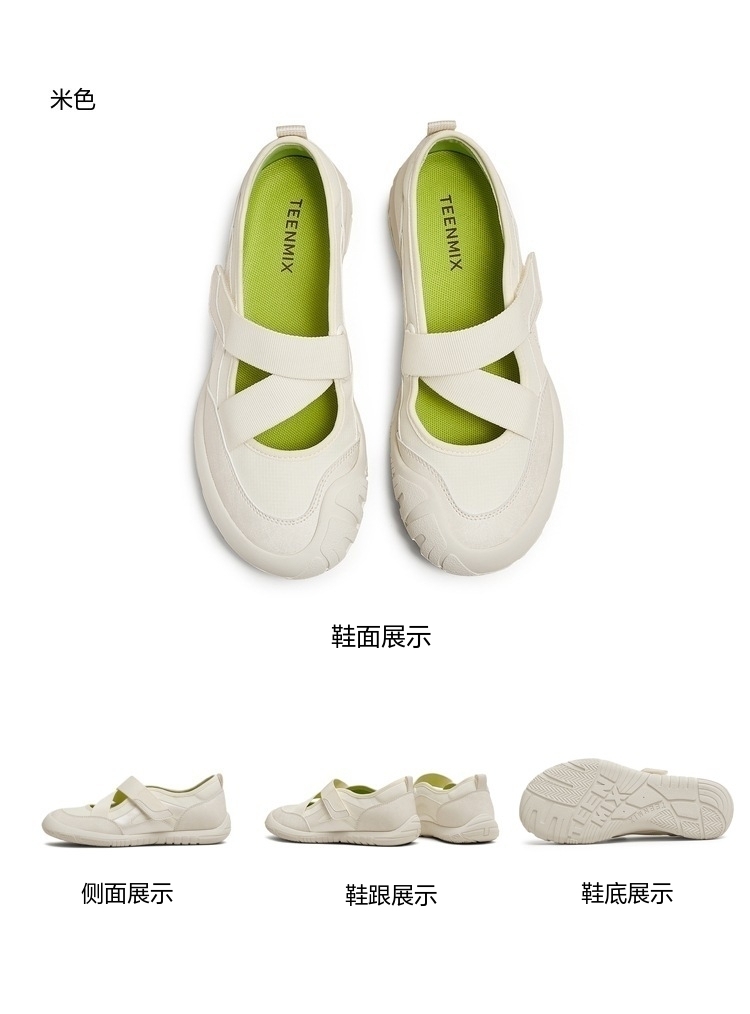 | 风格:休闲 | 跟高数值:2.5CM | 色系:米色 | 配跟:无 | 性别:女子 |