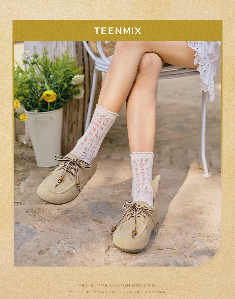 | 跟高范围:低跟鞋(小于3CM) | 鞋面图案:纯色 | 鞋跟形状:平底 | 流行元素:交叉绑带 | 参考鞋长(女):24.5CM |