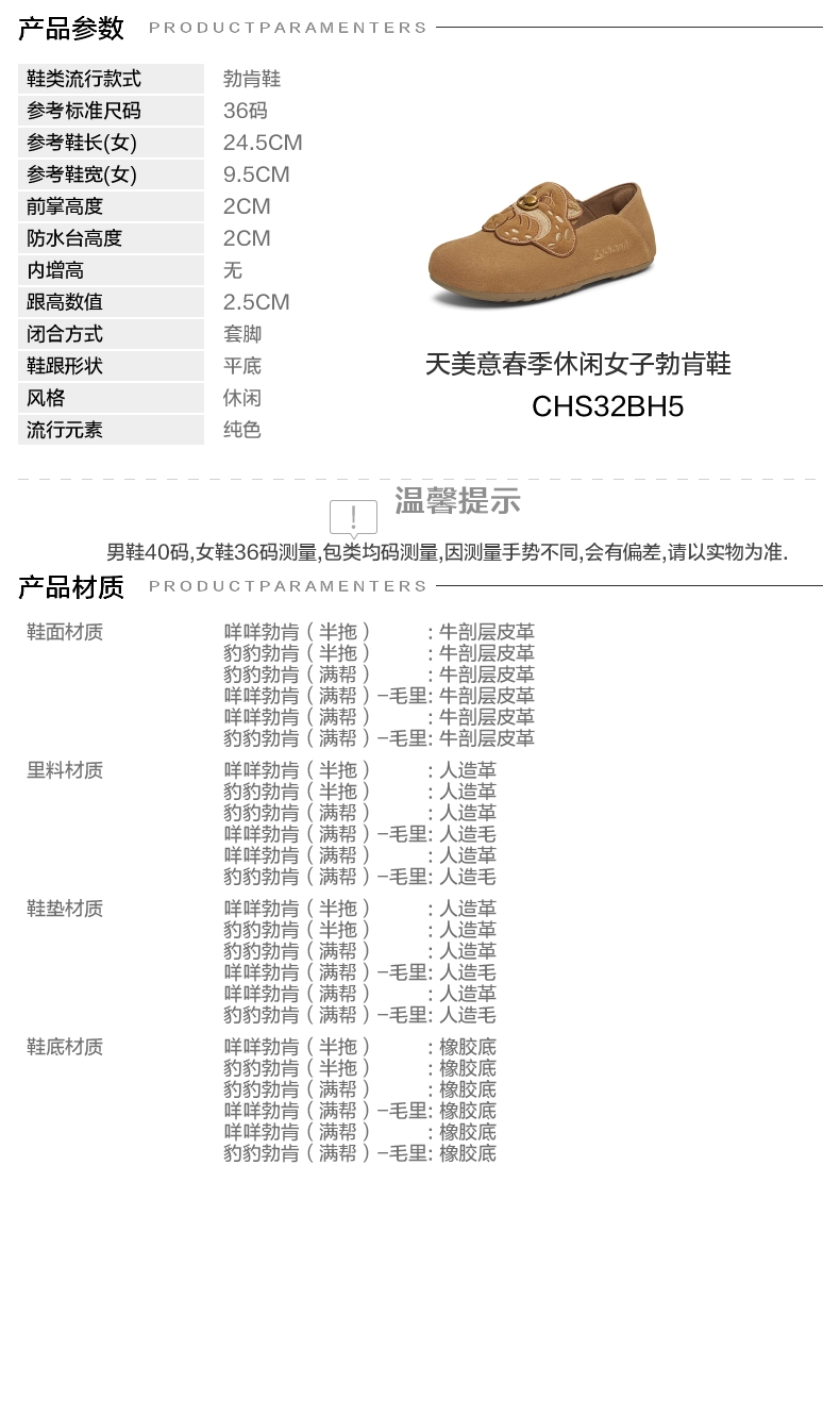 | 参考鞋宽(女):9.5CM | 风格:休闲 | 年份:2025年 | 色系:棕色 | 参考标准尺码:36码 |