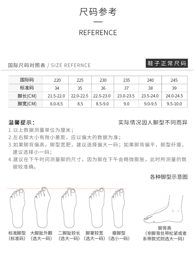 | 参考鞋宽(女):7.5CM | 风格:简约 | 色系:红色 | 参考标准尺码:36码 | 跟高数值:7CM |