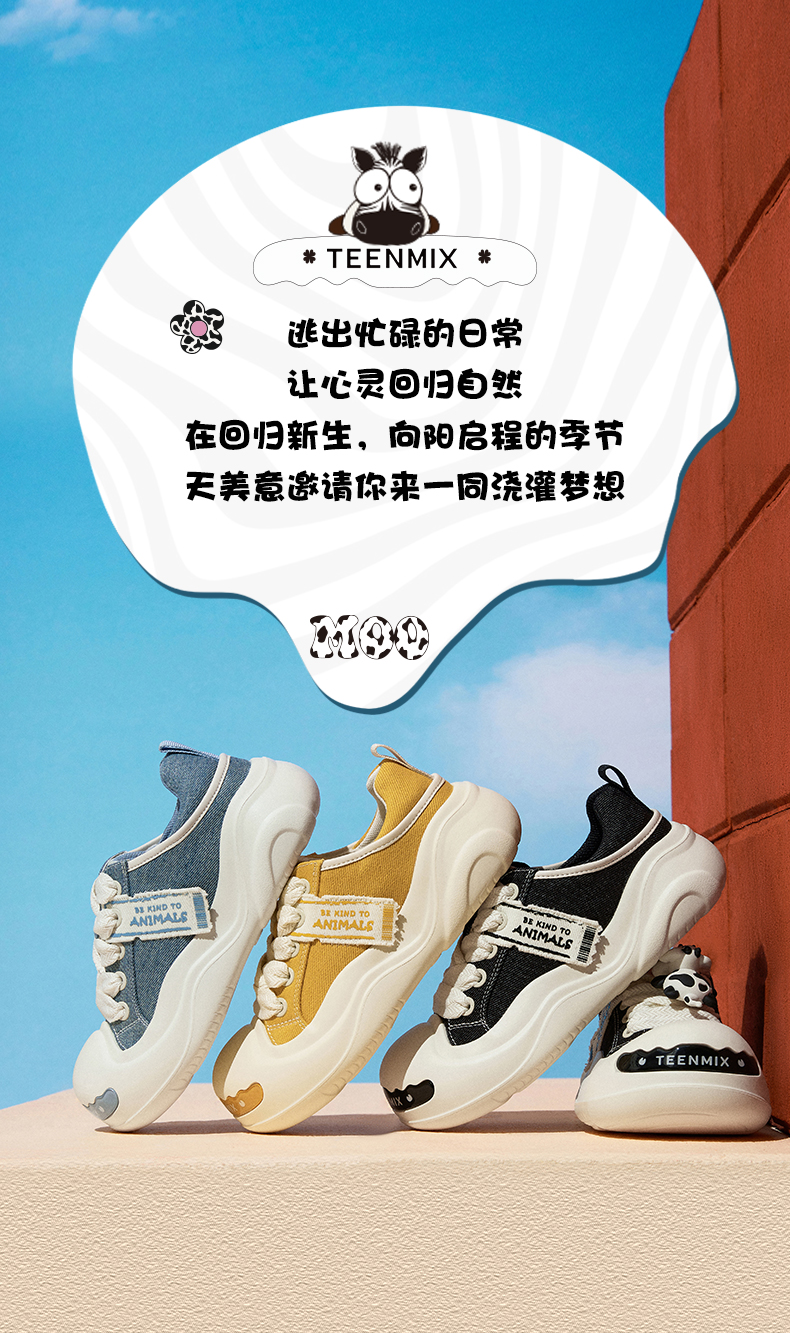 Teenmix(天美意),作为一个都市时尚休闲品牌,倡导“life for fun ,style for teens”即 “人生追求情趣,年轻追求个性”的生活品位,迎合都市年轻人不拘一格,追求mix&match自由组合,创出自我风格的潮流理念。Teenmix向人们展示了流行的转变,强调创意与个性,“teen”代表一群张扬个性、散发活力、追求都市炫彩生活的新新人群;“ mix”即mix&match,代表时尚混搭精神,品牌为年轻人提供恍如贴身订造的时尚潮品,并因应时尚的转变而响应。“随我意,天美意”传达了品牌的主张与个性。