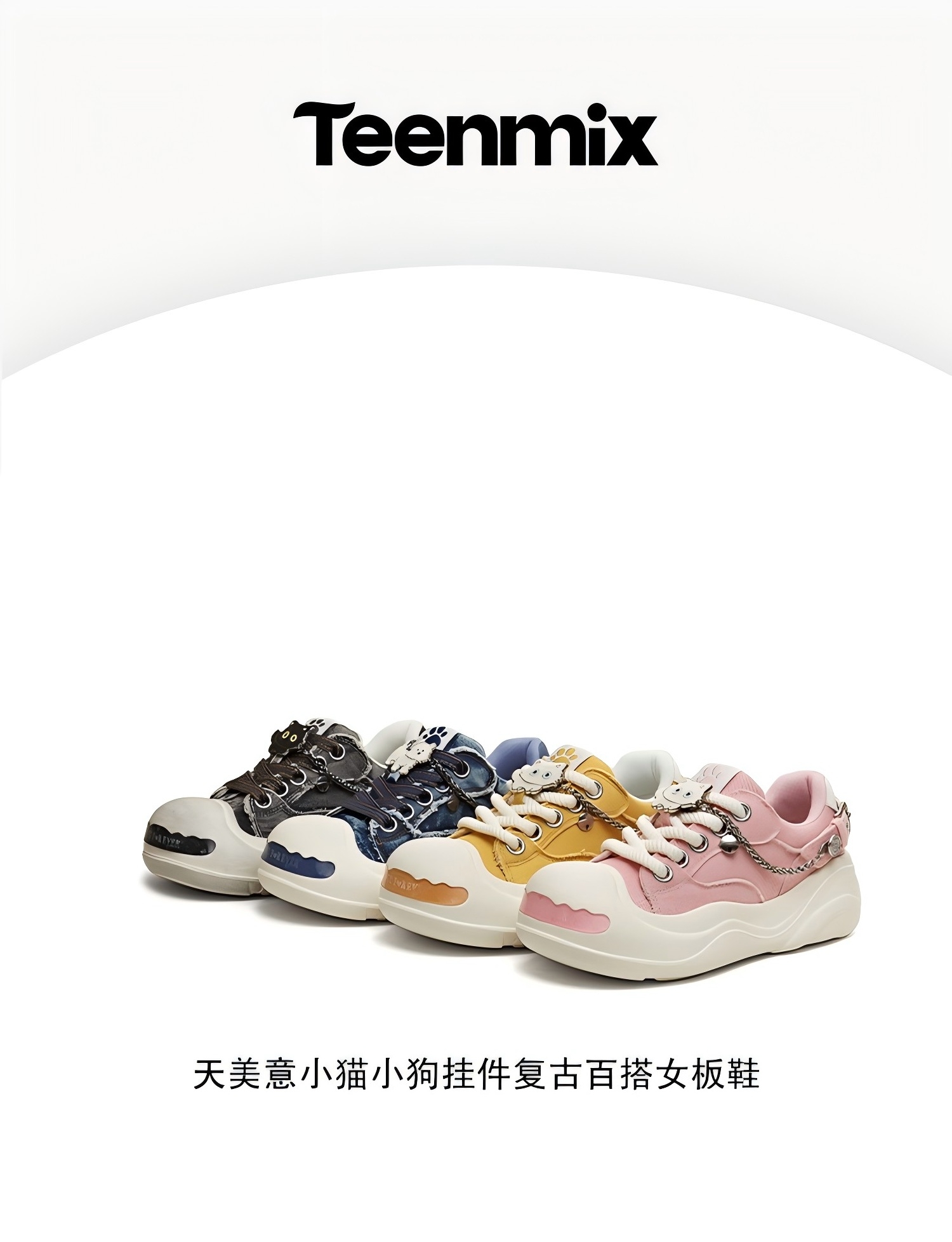 Teenmix(天美意),作为一个都市时尚休闲品牌,倡导“life for fun ,style for teens”即 “人生追求情趣,年轻追求个性”的生活品位,迎合都市年轻人不拘一格,追求mix&match自由组合,创出自我风格的潮流理念。Teenmix向人们展示了流行的转变,强调创意与个性,“teen”代表一群张扬个性、散发活力、追求都市炫彩生活的新新人群;“ mix”即mix&match,代表时尚混搭精神,品牌为年轻人提供恍如贴身订造的时尚潮品,并因应时尚的转变而响应。“随我意,天美意”传达了品牌的主张与个性。