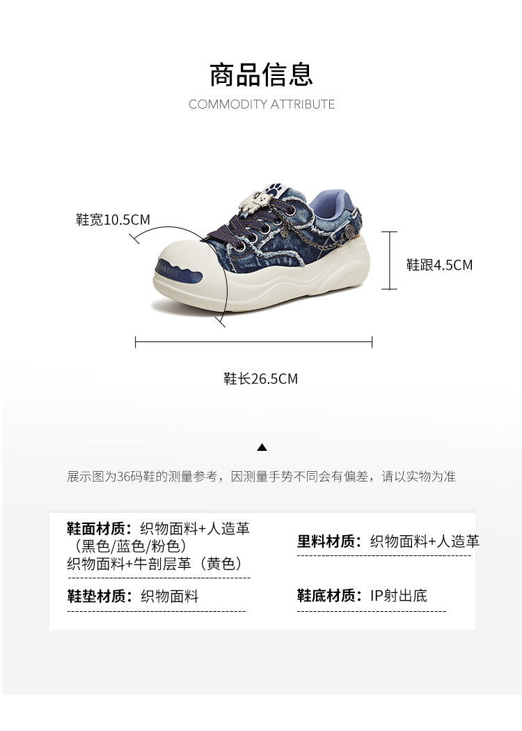 | 鞋跟形状:厚底 | 参考鞋长(女):26.5CM | 流行元素:纯色 | 参考鞋宽(女):10.5CM | 风格:休闲 |