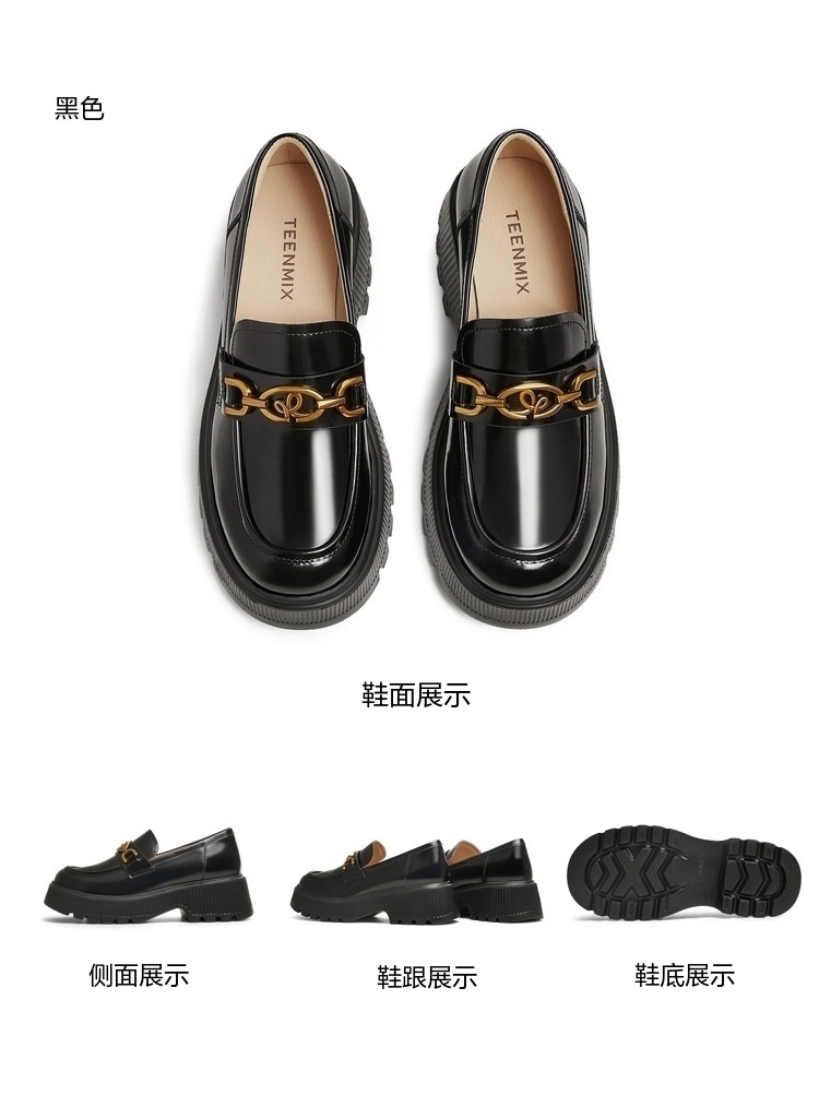 | 风格分类:乐福鞋 | 上市时间:2025年春季 | 鞋类流行款式:乐福鞋 | 鞋头款式:圆头 | 跟高范围:中跟鞋(3-5CM) |